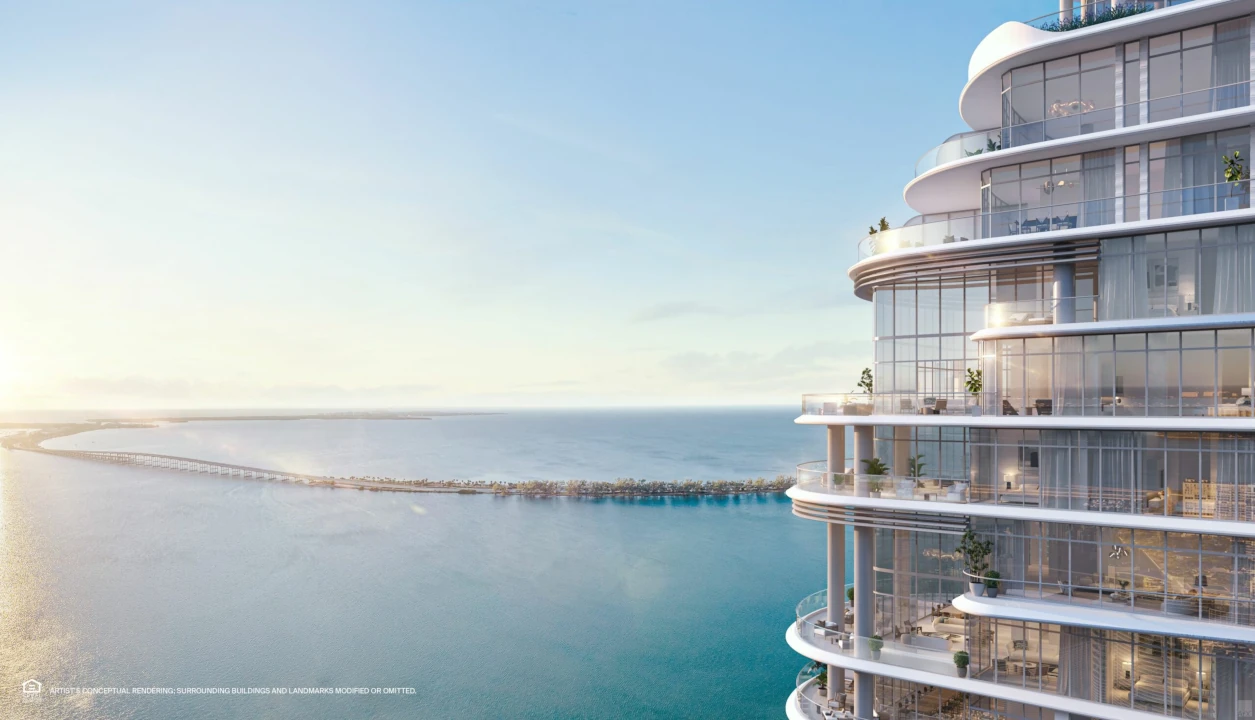 St. Regis and Related Group present a collection of residences with unobstructed views of the Miami skyline, Biscayne Bay, and the Atlantic Ocean, 48 stories are made up of two- to seven-bedroom condos measuring from 2,300- to 8,900 square feet with private entry EV charging stations, 24/7 attended lobby and a 24-hour concierge